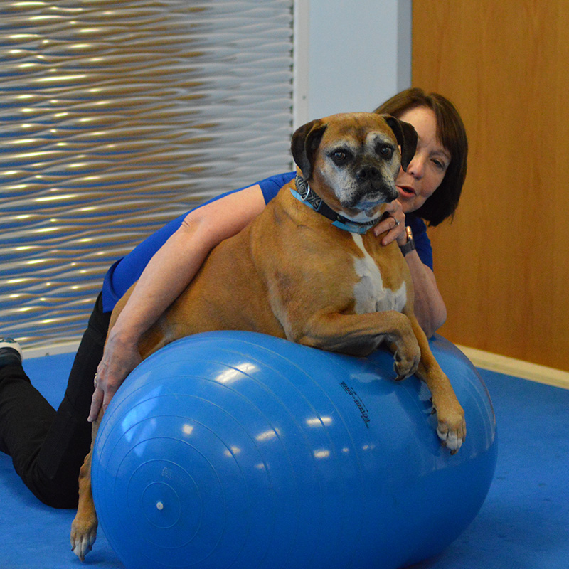 - Exercises – determined based on pet’s needs and may include platforms/steps, balance discs, and therapy peanuts